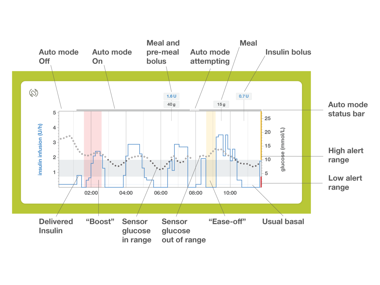 This learning is based on the body’s overall insulin need; the insulin needed on average and during the day.